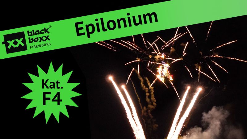 Ein äußerer Doppelfächer aus paarigen, silbernen Titanschweifkometen schließt einen zentralen 5er Fächer aus Brokatpalmen mit roten Spitzen in einer Goldflimmerwolke ein. Zentrale Abschüsse aus rot-grünen Sternenregen begleiten die Komposition.