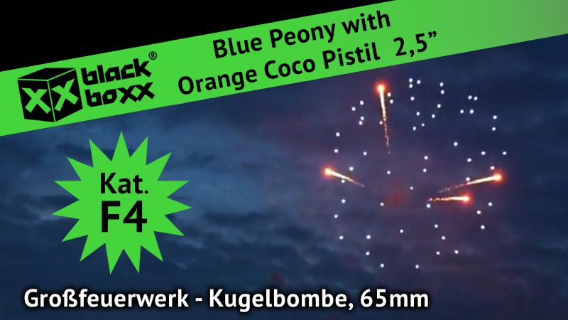 Päonie Blau mit Zentrum aus Koko-Palme in Orange.