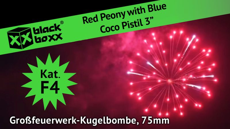 Päonie Rot mit blauem Kokospalmen- Zentrum.