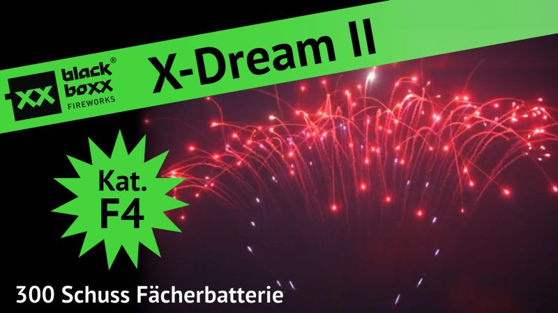 Abschuss von Kometen in Blau mit Verwandlung zu roter Crossette im zweiläufigen S-Fächer