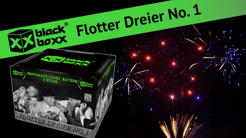 3er Fächer mit Wechsel-Effekt. Fächer aus Brokatfeuertöpfen und Farbkometen mit Verwandlung zu Brokatpalmen in blauer Päonie, kombiniert mit farbig wechselnden Dahlien in blauer Päonie.