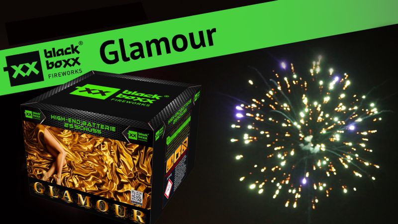 Glamouröse Schönheit aus raffinierten Farb- und Blinkstern-Kombinationen: 1. Sternenbuketts in Violett mit grünen Blinksternen; 2.Goldflimmersterne mit grünen Blinksternen; 3.Rotflimmer mit silbernen Blinksternen; 4.Purpur Dahlie mit silbernen Blinksternen; 5.gelbe Dahlie mit Rotflimmersternen - alle Effekte mit farbigem Kometenaufstieg.