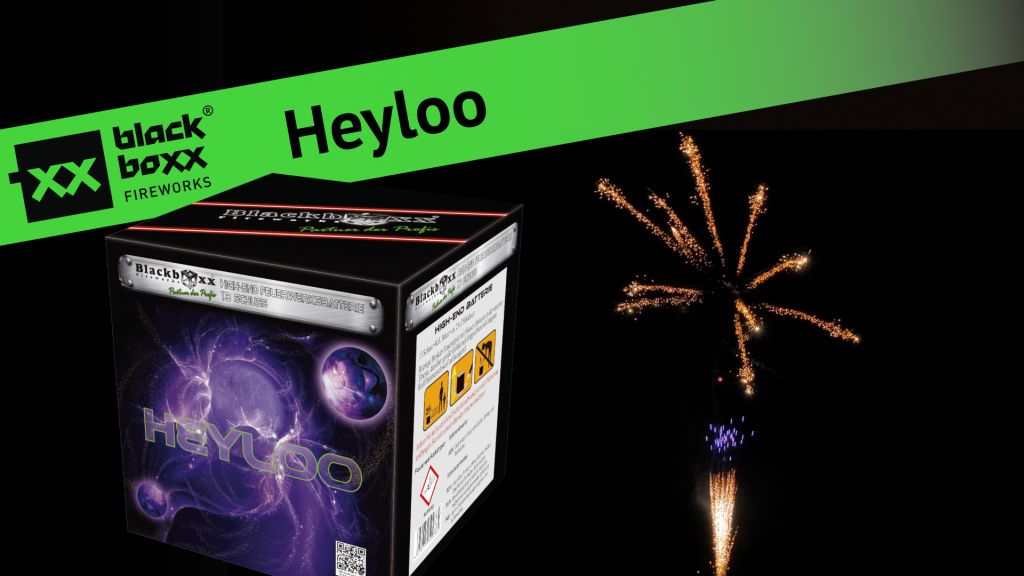 Riesige Brokat-Feuertöpfe mit blauen Spitzen in der unteren Ebene, darüber große Goldcracklingpalmen mit langem Rotflimmerschweif aufsteigend