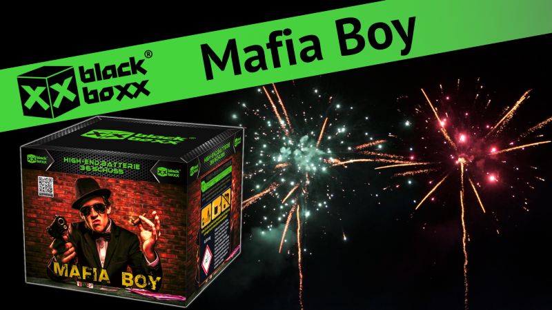 Titangold Schweif zu Coco-Palmen in Titangold, umgeben von großen, abwechselnden Sternenbuketts in Weißblinker, Grünblinker, Rotblinker, Goldblinker, Blau und Silbercrackling.