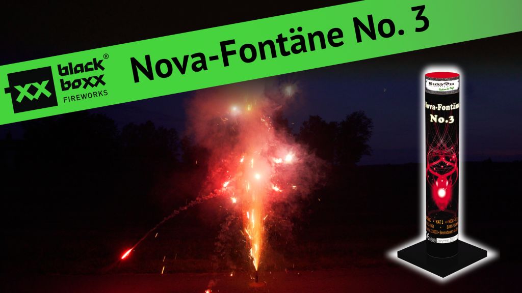 Große, 30mm Zylinderfontäne mit einem schönen und fülligem Effekt-Bukett aus Goldflimmerblüten mit roten Sternen