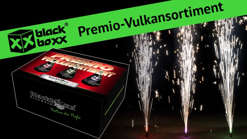 Sortiment mit 3 Premio-Vulkanen: 1x Silber mit roter Leuchtbasis, 1x Silber mit grüner Leuchtbasis, 1x Silber mit Purpur Leuchtbasis