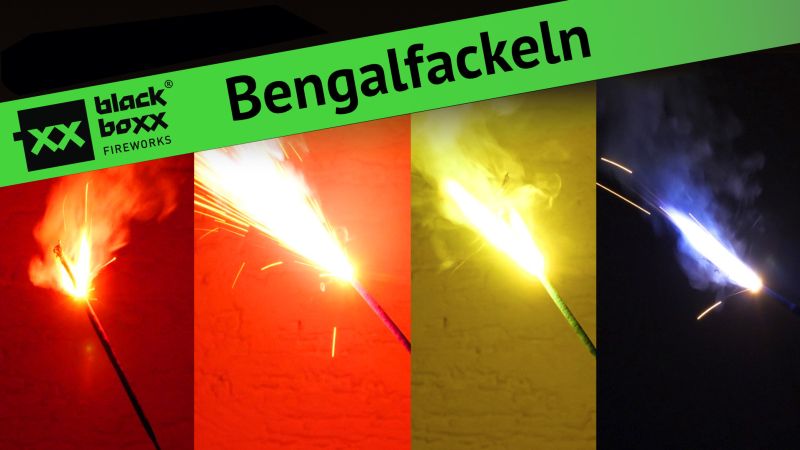 Farbprächtige Bengalfackeln in Rot, Blau, Grün und Purpur - 2 Stück je Farbe. Länge ca, 30cm.