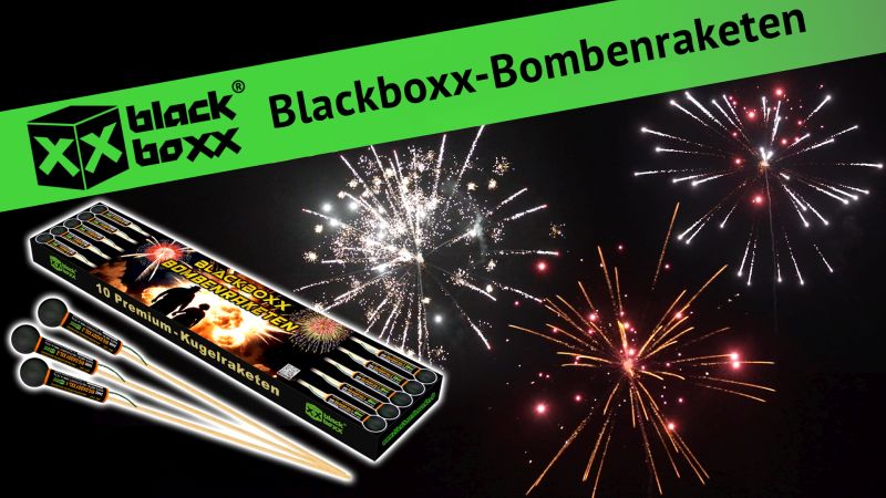 10 professionelle Kugelbomben-Raketen vom Kaliber 30 und 38 mm im Sortiment.