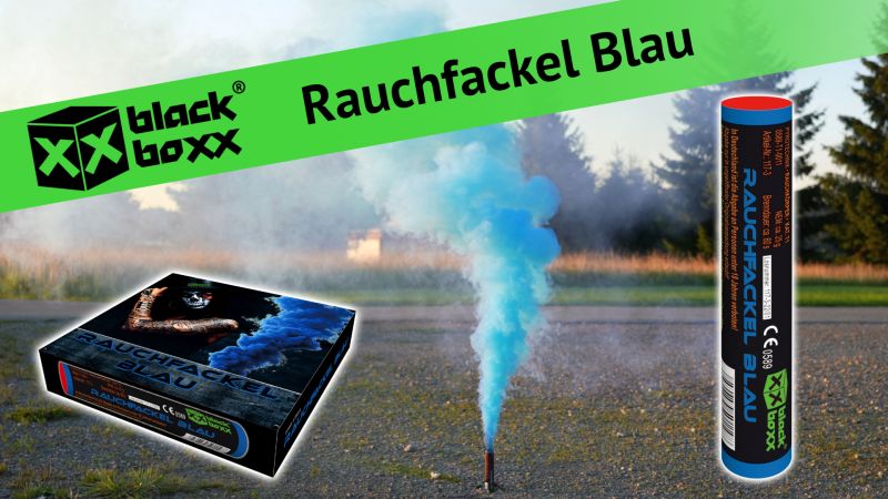 Blaue Rauchfackel mit intensiver Farbe, guter Rauchentwicklung und ca. 1 Minute Laufzeit