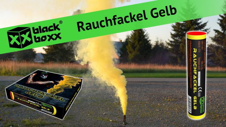 Gelbe Rauchfackel mit intensiver Farbe, guter Rauchentwicklung und ca. 1 Minute Laufzeit