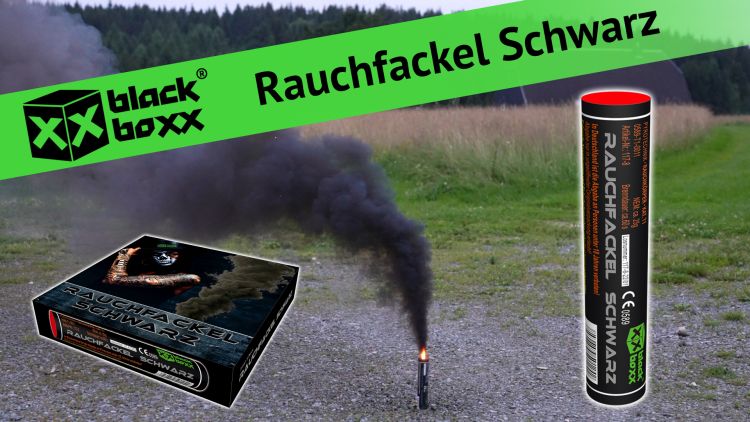 Schwarze Rauchfackel mit intensiver Farbe, guter Rauchentwicklung und ca. 1 Minute Laufzeit