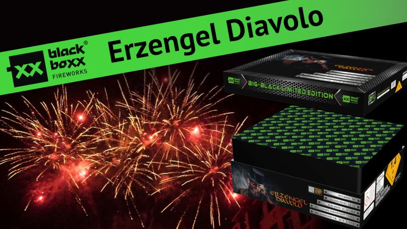 Ein Verbundfeuerwerk unserer Big-Black Limited Edition, bestehend 4 verschiedenen Batterien mit verschiedenen Effektkombinationen in folgender Performance: